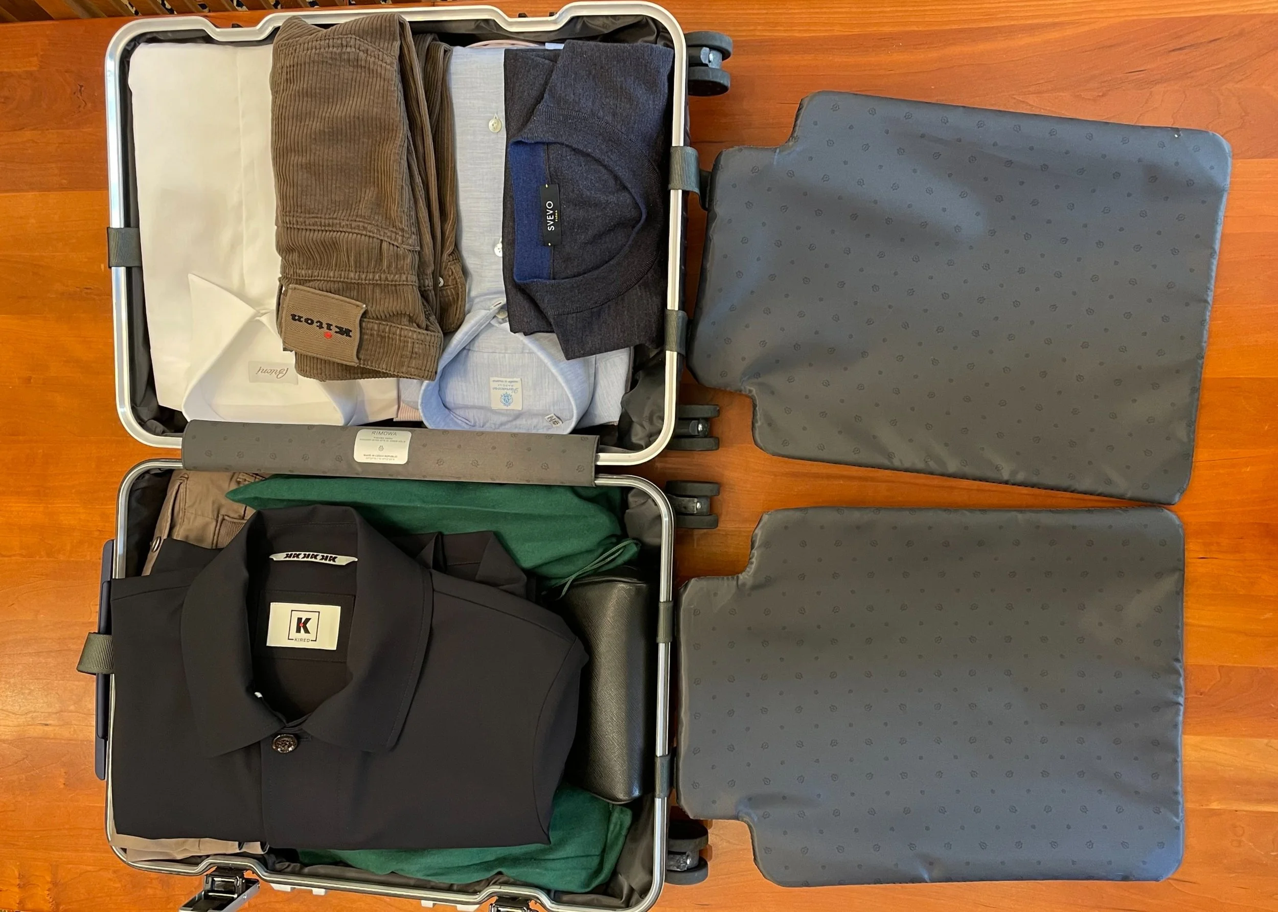 Matkustavan herrasmiehen paras ystävä on Navy Blazer. Matkapäivien mukaan pakataan paidat, housut ja muut asusteet. Esimerkiksi kolmella eri paidalla, solmiolla, taskuliinalla ja housuilla saat joka päivälle uuden tyylikkään kokonaisuuden.